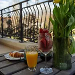 Apartament Quiet Studio With Terrace View posiada balkon i miejsce do siedzenia wyposażone w nowoczesne udogodnienia, takie jak TV i telewizja satelitarna. Obiekt noclegowy zapewnia 1 sypialnię. W 1 łazience z bidetem, oddzielną toaletą i prysznicem znajduje się również suszarka do włosów i ręczniki kąpielowe.